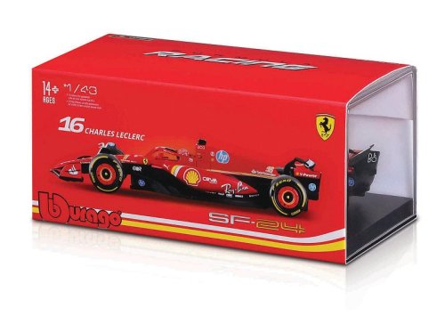 Bburago modely závodných vozidiel Formule 1 v mierke 1:43 z kolekcie FORMULA RACING sú zbierkou krásneho dizajnu s vysokým dôrazom na presnosť detailov. Formula zo stajne Ferrari SF-24 (2024) s autentickými detailmi závodného vozidla a helmy jazdca. Modely sú vyrobené z liateho kovu s plastovými detailmi. Každý z modelov v klasickom závodnom designe je umiestnený v dekoratívnom akrylovom boxe. Vďaka dekoratívnemu boxu je tento model skvelým zberateľským kúskom a darčekom na každú príležitosť. Nevhodné pre deti do 3 rokov. Rozmery balenia: 6,7 x 14,7 x 7,5 cm. Vek: 14+