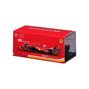 Bburago modely závodných vozidiel Formule 1 v mierke 1:43 z kolekcie FORMULA RACING sú zbierkou krásneho dizajnu s vysokým dôrazom na presnosť detailov. Formula zo stajne Ferrari SF-24 (2024) s autentickými detailmi závodného vozidla a helmy jazdca. Modely sú vyrobené z liateho kovu s plastovými detailmi. Každý z modelov v klasickom závodnom designe je umiestnený v dekoratívnom akrylovom boxe. Vďaka dekoratívnemu boxu je tento model skvelým zberateľským kúskom a darčekom na každú príležitosť. Nevhodné pre deti do 3 rokov. Rozmery balenia: 6,7 x 14,7 x 7,5 cm. Vek: 14+
