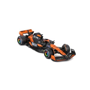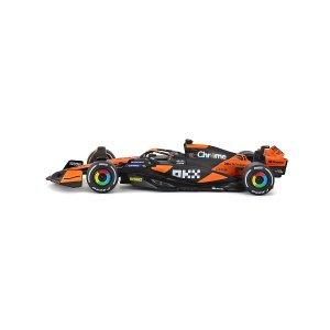 Bburago modely závodných vozidiel Formule 1 v mierke 1:43 z kolekcie RACE sú zbierkou krásneho dizajnu s vysokým dôrazom na presnosť detailov. Formula zo stajne McLaren MCL38 (2024) s autentickými detailmi závodného vozidla a helmy jazdca. Modely sú vyrobené z liateho kovu s plastovými detailmi. Každý z modelov v klasickom závodnom designe je umiestnený v dekoratívnom akrylovom boxe. Vďaka dekoratívnemu boxu je tento model skvelým zberateľským kúskom a darčekom na každú príležitosť. Nevhodné pre deti do 3 rokov. Rozmery balenia: 6,7 x 14,7 x 7,5 cm. Vek: 14+