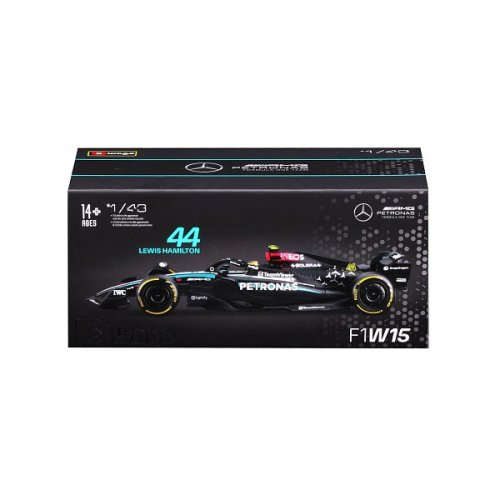 Bburago modely závodných vozidiel Formule 1 v mierke 1:43 z kolekcie RACE sú zbierkou krásneho dizajnu s vysokým dôrazom na presnosť detailov. Formula zo stajne Mercedes-AMG Petronas W15 (2024) s autentickými detailmi závodného vozidla a helmy jazdca. Modely sú vyrobené z liateho kovu s plastovými detailmi. Každý z modelov v klasickom závodnom dizajne je umiestnený v dekoratívnom akrylovom boxe. Vďaka dekoratívnemu boxu je tento model skvelým zberateľským kúskom a darčekom na každú príležitosť. Nevhodné pre deti do 3 rokov. Rozmery balenia: 6,7 x 14,7 x 7,5 cm. Vek: 14+