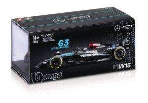 Bburago modely závodných vozidiel Formule 1 v mierke 1:43 z kolekcie RACE sú zbierkou krásneho dizajnu s vysokým dôrazom na presnosť detailov. Formula zo stajne Mercedes-AMG Petronas W15 (2024) s autentickými detailmi závodného vozidla a helmy jazdca. Modely sú vyrobené z liateho kovu s plastovými detailmi. Každý z modelov v klasickom závodnom dizajne je umiestnený v dekoratívnom akrylovom boxe. Vďaka dekoratívnemu boxu je tento model skvelým zberateľským kúskom a darčekom na každú príležitosť. Nevhodné pre deti do 3 rokov. Rozmery balenia: 6,7 x 14,7 x 7,5 cm. Vek: 14+