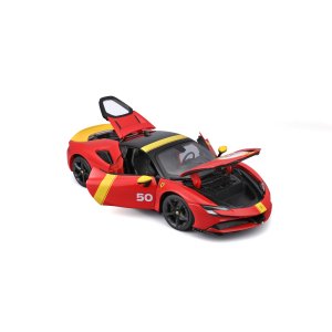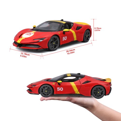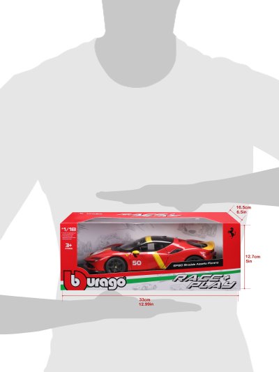 Modely automobilov Ferrari v mierke 1:18 z kolekcie RACE+PLAY sú zbierkou krásneho designu s vysokým dôrazom na presnosť detailov. Detailné prevedenie motorových priestorov, interiéru, kolies a odznakov. Modely sú vyrobené z liateho kovu s plastovými detailmi. Väčšina modelov z kolekcie má otváracie dvere, kufor alebo kapotu. Všetky modely v kolekcii majú plne funkčné riadenie a zavesenie všetkých kolies. Model je namontovaný na výstavnom stojane. Balené v krabičke. Nevhodné pre deti do 3 rokov. Rozmery balenia: 12,6 x 33,5 x 16,5 cm. Vek: 3+