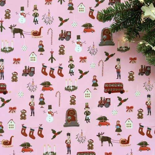 Be Nice EKO baliace papiere Anglická rozprávka majú na spodnej strane mriežku, pre ľahké strihanie. Vianočný baliaci papier Anglická rozprávka ilustrovala česká výtvarníčka Bára z Nikolajky.