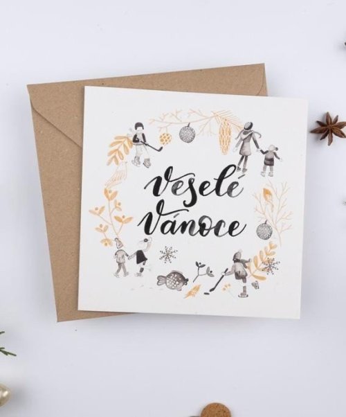 Be Nice EKO vianočné prianie z recyklovaného papiera. Jednoduché a napriek tomu krásne prianie s textom Veselé Vianoce. Prianie ilustrovala a krasopisne nadpísala česká výtvarníčka Bára z Nikolajky. Vnútri bez textu. Rozmer: 15,5 x 15,5 cm