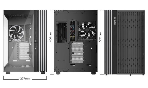 Počítačová skriňa Be quiet! LIGHT BASE 900FX moderného strihu, ktorá svojimi rozmermi a funkčnosťou poteší všetkých náročných užívateľov a domácich majstrov. Kombinuje štýlový vzhľad s priehľadnými panelmi spolu s efektívnym chladením. Vo výsledku potom získate skvele vyzerajúci PC systém s vysokým výkonom a tichou prevádzkou. Uplatní sa pri tvorbe hernej zostavy, multimediálneho centra aj pracovnej stanice . Na variabilnú konfiguráciu je tu miesta viac než dosť. Veľké priehľadné panely na prednej a bočnej strane poskytujú panoramatický pohľad na komponenty vo vnútri skrine. Fanúšikov osvetlenia poteší prítomnosť ARGB LED pásika .