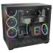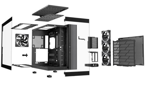 Unikátna počítačová skriňa s priehľadnou bočnicou aj predným panelom formátu Middle Tower ponúka dostatok priestoru pre montáž väčšiny dostupných komponentov. Hlavnou prednosťou tejto skrine je možnosť rýchlej zmeny jej orientácie vďaka systému odnímateľných a premiestniteľných nožičiek . Skriňa je dodávaná so štyrmi predinštalovanými 140mm ventilátormi s ARGB podsvietením . K tomu ponúka ďalších až 6 pozícií pre ventilátory a dva integrované rozbočovače ventilátorov a ARGB . Na prednom paneli sa nachádzajú dva porty USB 3.0 , jeden port USB-C , slúchadlový výstup a audio vstup pre mikrofón. Herný dizajn ešte dopĺňa elegantné ARGB osvetlenie lemujúce strany skrine, vďaka čomu je viditeľné bez ohľadu na to, v akej orientácii skriňu používate. V skrini je dostatok priestoru pre chladič CPU do výšky až 190 mm a grafickú kartu s dĺžkou až 495 mm. Dômyselné riešenie umožňuje pohodlné umiestnenie až 420 mm dlhého výmenníka vodného chladenia na hornej alebo spodnej strane. Poteší tiež prítomnosť prachových filtrov či integrovaná podpera grafickej karty . Skriňa je dodávaná bez zdroja .