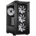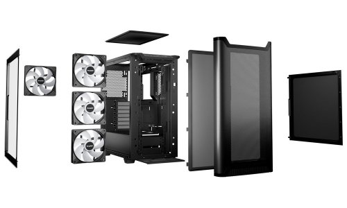 Všestranná počítačová skriňa formátu Middle Tower s priehľadnou bočnicou a perforovaným predným panelom ponúka kompaktné rozmery a vysoký prietok vzduchu. Tri ventilátory Light Wings LX 120 PWM privádzajú studený vzduch spredu, zatiaľ čo 140mm zadný ventilátor horúci vzduch vyfukuje. Navyše disponujú ARGB podsvietením pre nezameniteľné svetelné efekty. Pre podporu celého ARGB ekosystému je za držiakom základnej dosky nainštalovaný húb pre 6 ARGB zariadení a PWM ventilátory . Na hornom paneli sa nachádzajú dva USB 3.0 porty, jeden port USB-C a kombinovaný port slúchadiel a mikrofónu. V skrini je dostatok priestoru pre chladič CPU do výšky až 178 mm a grafickú kartu s dĺžkou až 368 mm. Dômyselné riešenie umožňuje pohodlné umiestnenie až 360 mm dlhého výmenníka vodného chladenia na prednej strane. Poteší tiež pohodlná správa káblov či PCIe slot, ktorý je možné otočiť o 90 ° pre zvislú montáž širokých grafických kariet . Skriňa je dodávaná bez zdroja .