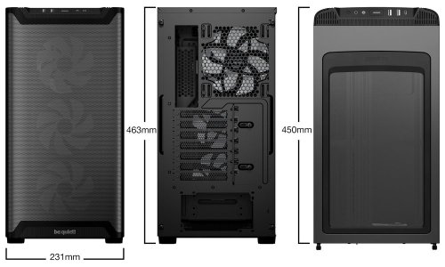 Celá zostava sa tak podieľa na efektívnom odvetrávaní a vysokom prietoku vzduchu vo vnútri skrine. Konštrukcia s otočnými PCIe slotmi umožňuje zvislú montáž grafických kariet, čím si môže dovoliť aj celkové menšie rozmery. Medzi ďalšie prednosti patrí múdra správa káblov , ktorá umožní využiť priestor skrine na maximum a pritom efektívne. Na hornom paneli skriňa Be quiet! PURE BASE 501 LX obsahuje konektory na pripojenie hlavných periférií.