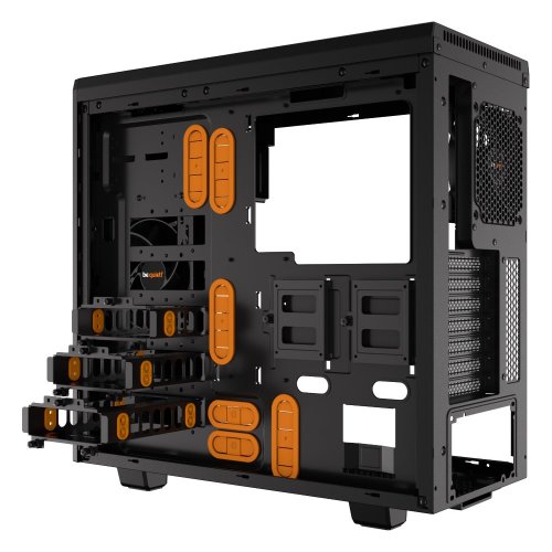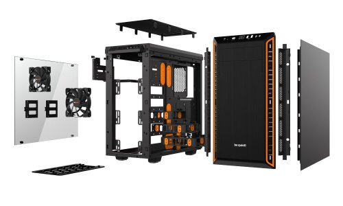 Kvalitná a tichá skriňa výrobcu Be quiet! zaujme celopriehľadnou bočnicou z tvrdeného skla a decentným dizajnom. Vďaka vysokému stupňu modularity vyhovie všetkým vašim požiadavkám. Ľahko dostupnými sa stanú dva USB 3.0 porty , port slúchadiel a mikrofónu a trojpolohový prepínač pre reguláciu otáčok . Pre optimálne prúdenie vzduchu vo vnútri skrine je dodávaná s dvojicou ventilátorov inštalovaných v prednej a zadnej časti. Celkom je možné uloženie až siedmich ventilátorov alebo až troch blokov vodného chladenia. Pre disky potom slúžia tri 3,5" pozície alebo až osem 2,5" pozícií. Svoje miesto vo vnútri skrine nájdu základné dosky do formátu ATX. Skriňa je dodávaná bez zdroja .