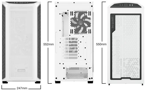 Trojica predinštalovaných ventilátorov Pure Wings o veľkosti 140 mm zaisťujú ideálne prúdenie vzduchu pri chladení veľmi náročných komponentov pri zachovaní tichej prevádzky. Vnútorný priestor ponúka veľkorysé možnosti usporiadania a voľby komponentov. Dokáže pojať moderné a objemné grafické karty , dosky formátu E-ATX alebo až 420mm dlhý výmenník vodného chladenia na prednej a vrchnej strane. Integrované ARGB LED diódy na prednom paneli disponujú niekoľkými farebnými režimami, ktoré vdýchnu vašej zostave jedinečný vzhľad. Prakticky umiestnené lišty pre vedenie káblov zaistia prehľadné usporiadanie vo vnútri skrine. Samozrejmosťou je prítomnosť najdôležitejších konektorov na hornom paneli.