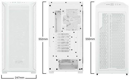 Dizajnové lopatky znižujú turbulencie a tým aj celkovú hladinu hluku. Vonkajšia konštrukcia skrine podporuje mimoriadnu priedušnosť a podporí maximálny výkon aj tých najnáročnejších konfigurácií. Pre ešte lepšiu performanciu ponúka skriňa Be quiet! SHADOW BASE 800FX prachový filter , ktorý možno ľahko vybrať a vyčistiť. Vďaka veľkorysému priestoru vám umožní poskladať skutočne špičkovú konfiguráciu. Prakticky umiestnené lišty pre vedenie káblov zaistia prehľadné usporiadanie vo vnútri skrine. Samozrejmosťou je prítomnosť najdôležitejších konektorov na hornom paneli.