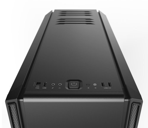 Konektory na hornom paneli: 2 x USB 3.0, 1 x USB 2.0, 1 x výstup pre slúchadlá, 1 x vstup mikrofónu, regulátor otáčok ventilátorov