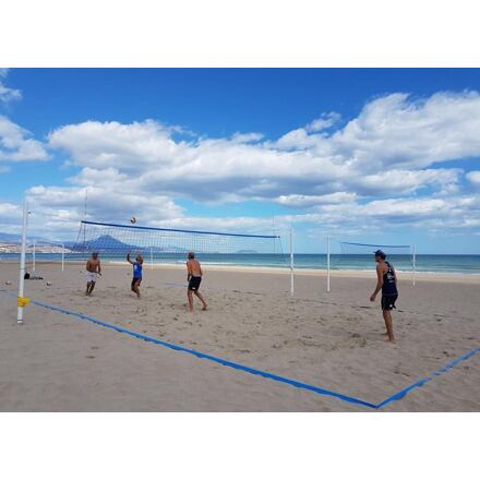 So sadou lajn Beach Boundary známej španielskej značky León de Oro si vytvoríte ihrisko na plážový volejbal behom chvíľky. Čiary sú vyrobené z odolného PVC materiálu. Sada sa skladá z 2 lajn s dĺžkou 8 ma 2 lajn s dĺžkou 16 m. Na spojenie rohov kolíky majú lajny kovové očká (kolíky nie sú súčasťou balenia). K lajnám tiež odporúčame zaobstarať si kvalitnú beachvolejbalovú sieť Competition 3 mm rovnakej značky. - materiál: odolné PVC - šírka: 5 cm - sada: 2 x 8 m + 2 x 16 m - bez štipcov