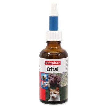 Prípravok na starostlivosť o oči psov, mačiek a ostatných zvierat. Čisteniu očí a ich okoliu predchádza podráždenie od špiny a prachu. Oftal stimuluje prirodzený proces čistenia a zamedzuje tvorbe tmavých škvŕn pod očami. Zloženie: Voda, chlorid sodíka, sodium sulfáte, sódium EDTA, chlorid benzalkónium, dymetyl sulfón (MSM). Použitie: Niekoľko kvapiek nakvapkať do očí zvieraťa, potom očistiť zmotkom vaty navlhčenej v Oftale, smerom od vonkajšieho kútika oka.