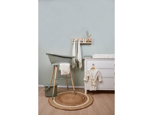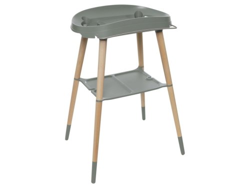 Veľmi stabilný vaňový stojan Sense má nohy vyrobené z lakovaného bukového dreva s certifikáciou FSC. To dodáva stojanu teplý moderný vzhľad. Je vybavený praktickými pomôckami; vpredu je pripevnený držiak na uteráky. Priestranná plastová polička poskytuje dostatok miesta napríklad na šampón, žinku, vodné hračky alebo kúpací gél. To znamená, že máte po ruke všetky potrebné veci, aby ste si s dieťaťom mohli kúpanie užiť. Inovatívny systém upevnenia zaisťuje, že vaňu možno ľahko pripevniť k stojanu a tiež ľahko sňať. Po kliknutí môžete svoje bábätko nerušene a bezpečne kúpať.