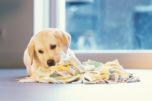 Uistite sa, že šteňa koberček nehryzie alebo nežuje.