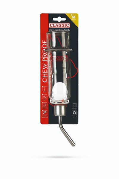 Klasická napájačka je vyrobená z tvrdeného skla a poskytuje Vášmu maznáčikovi dostatok čerstvej vody. Jednoducho sa pripevní na klietku pomocou upevňovacieho drôtika. Súčasťou je malá mrkvička, ktorá Vám na prvý pohľad ukáže, či má Váš maznáčik dostatok vody. Nerezové náustok s guličkou zabraňuje presakovaniu. Objem: 350 ml.