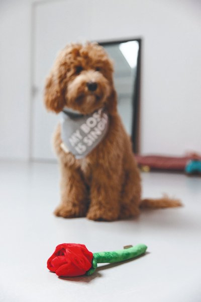 Červená ruža patrí k Valentínovi, že? Odmeňte Vášho štvornohého parťáka touto roztomilou ružou. Váš pes ju môže používať ako hračku, pretože je vyrobená z príjemného hebkého plyšu.