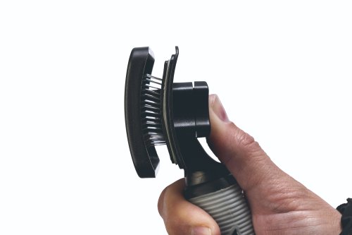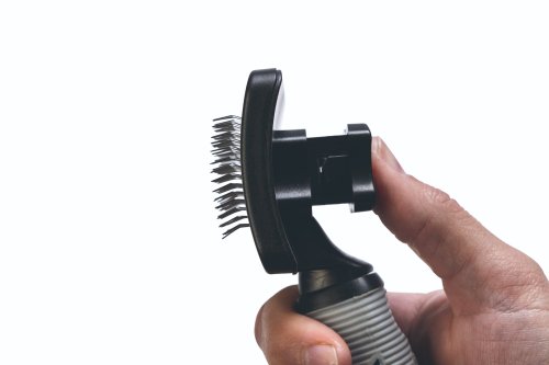 Následné odstránenie chlpov a nečistôt z kefy je super ľahké! Stlačením tlačidla na kefe systém "zoškrabne" chlpy a nečistoty. Tie tak z kefy ľahko odstránite.