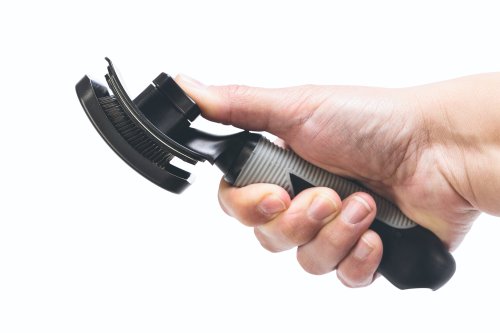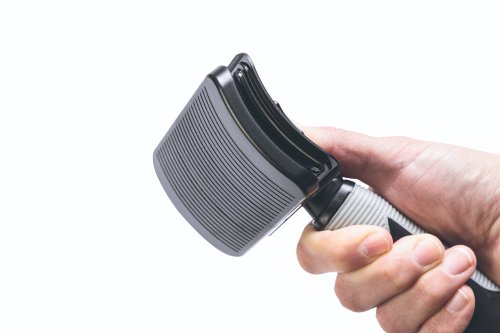 Následné odstránenie chlpov a nečistôt z kefy je super ľahké! Stlačením tlačidla na kefe systém "zoškrabne" chlpy a nečistoty. Tie tak z kefy ľahko odstránite.