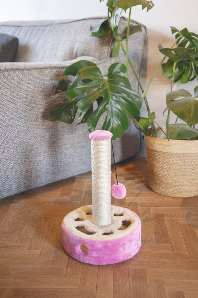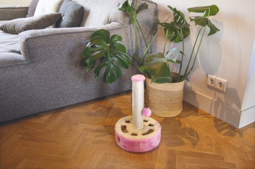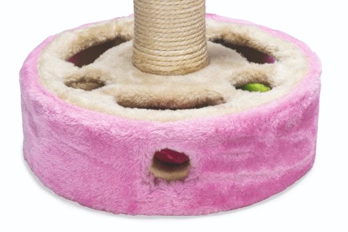 Zábavné škrabadlo ponúka Vášmu miláčikovi skutočnú hru na schovávačku. Spodnú časť tvorí kruhová krabica s niekoľkými otvormi. kde sú ukryté plyšové loptičky. Mačka pri ich lovení zamestná packy aj mozog. Zrelaxovať sa môže nekonečným škrabaním sisalového stĺpika. K hre vyzýva tiež zavesená plyšová loptička, ktorej odolá len ťažko :)
