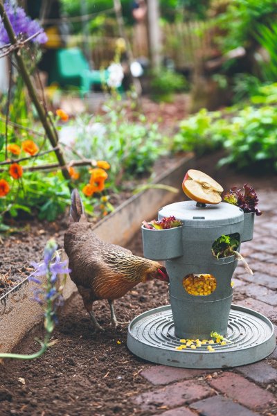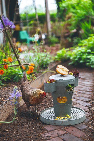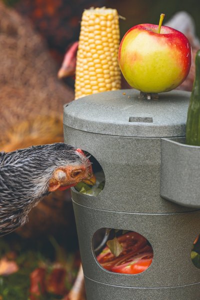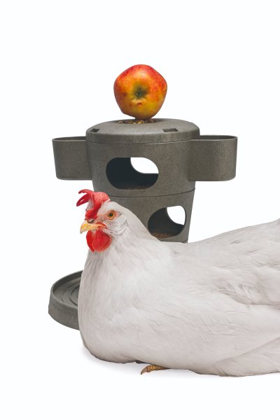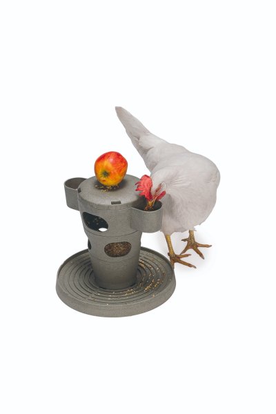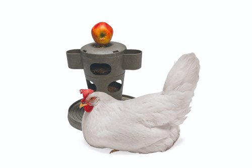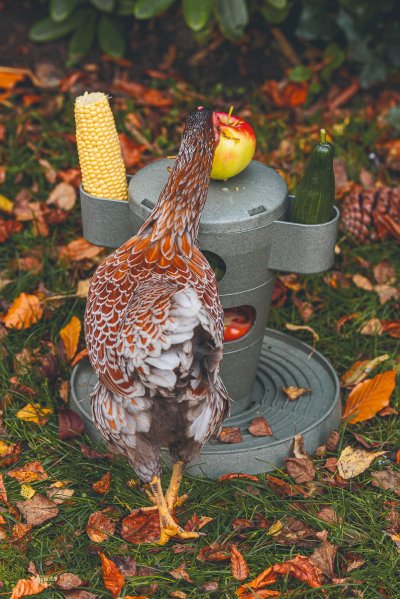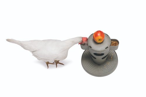 Kŕmiaca veža bola vyvinutá, aby Vaše kurča mohlo maškrtiť hlávkový šalát, kukuricu alebo inú zeleninu či ovocie. Veža funguje podobne ako základná kŕmiaca veža (KF-18251) s tým rozdielom, že je obohatená o prídavný držiak, kam je možné napichnúť zeleninu či ovocie. Po stranách nájdete ďalšie dva držiaky, kam môžete umiestniť ďalšie obľúbené dobroty. Ideálne pre kurčatá a sliepky rôznych veľkostí.