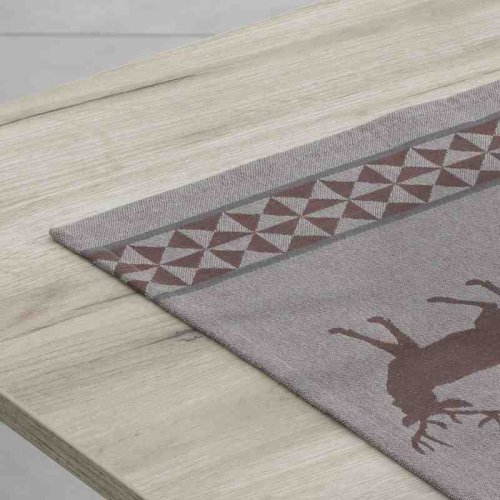 Krásny behúň na stôl v trendy štýle jeleňa vo farbe šedá / mahagónovo hnedá. Beh na stôl 160 x 50 cm vyrobený zo 100% bavlny skvele dopĺňa sériu Kela's Henrik. Možno prať do 60 ° C.100 % bavlna 160x50cm