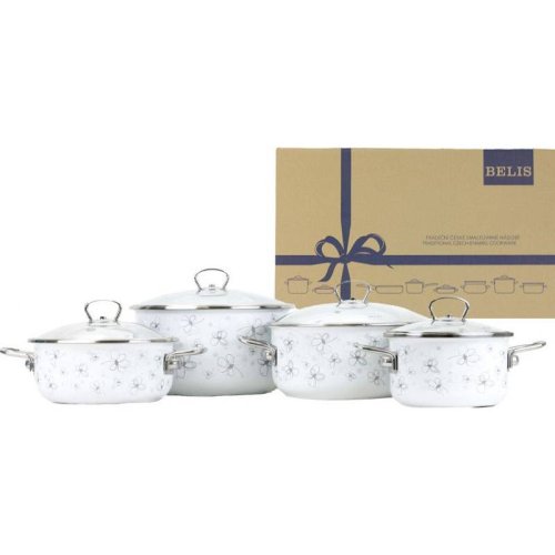 BELIS Sada smaltovaného riadu PREMIUM biely 4-dielna II