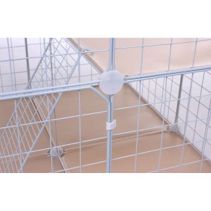 Merco Bella ohrádka pre zvieratká poskytuje vašim menším domácim miláčikom prehľadný a dobre členený priestor, kde môžu pohodlne odpočívať aj aktívne sa pohybovať. Vďaka dvojpodlažnej konštrukcii, rampe a prístupovým dvierkam má zviera viac priestoru a môže prirodzene využívať výšku aj členenie ohrádky. Celá ohrádka je určená na použitie vo vnútornom prostredí a je zostavená v konfigurácii z fotografie, teda so spodnou otvorenou sekciou, rampou a horným poschodím. Konštrukciu tvoria lakované mriežkové panely v bielej farbe, ktoré sa jednoducho spájajú pomocou stabilných plastových konektorov. Toto umožňuje pevné zostavenie bez použitia náradia. Na podlahu a poschodie sú použité panely s výplňou z plastovej fólie, ktoré sa ľahko udržujú. Dvierka v spodnej aj hornej časti ohrádky umožňujú pohodlný prístup k maznáčikovi. Upozornenie na veľkosť ôk v mriežkových paneloch klietky: Ohrádka má mriežkové oká o veľkosti 4 × 4 cm. Pred nákupom prosím overte, že telo ani hlava vášho zvieraťa nie sú menšie ako táto medzera. Menšie alebo štíhlejšie zvieratá by mohli: - prejsť cez otvor, - uviaznuť v mreži, - prípadne sa poraniť. Ohrádka je vhodná iba pre väčšie drobné zvieratá, u ktorých nehrozí prekĺznutie medzerou. Ohrádku Merco Bella zostavíte ľahko a rýchlo podľa podľa priloženého návodu vpravo vedľa popisu produktu. Rozmer vzorovej zostavy vo fotogalérii s využitím všetkých dielov: Dĺžka x šírka x výška: 74 x 74 x 72 cm Obsah balenia: - 18 x mriežkový panel, rozmer: 35 x 35 cm (veľkosť jedného oka mreže je 4 x 4 cm) - 2 x mriežkové dvierka 35 35 x 35 cm - 2 x rámček 35 x 35 cm - 1 x mriežková rampa pre prístup na poschodie 42 x 16 cm - 28 x plastová spojka s priemerom 3,5 cm - 4 x plastová západka dvierok - sada plastových sťahovacích pásikov - 1 x drevené kladivko Materiál: - zarážky, sťahovacie pásky) - plastová fólia (výplň plných panelov)