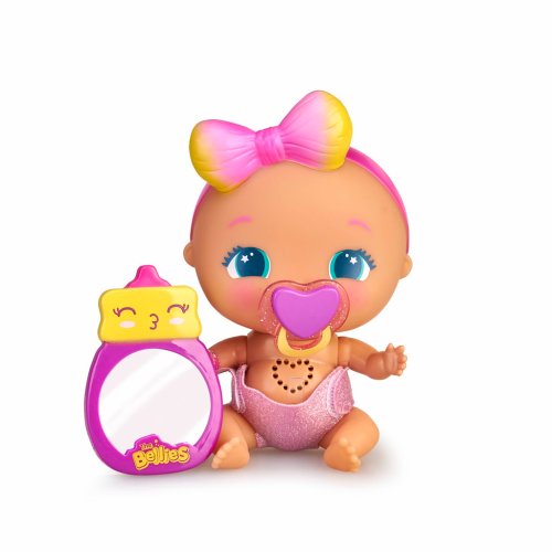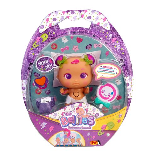 Roztomilé bábätká Bellies hľadajú nový domov. Interaktívne bábätká bľabotajú a bije im srdiečko. Každé má unikátne materské znamienko. Bábätká Noni-No a Kuku-Cute majú unikátne trblietavé plienky a originálne doplnky. Obsah balenia: bábika, cumlík, biela plienka, trblietavá plienka, fľaša alebo lízatko, adopčná listina. Assort 2: Noni-No a Kuki-Cute. Pre deti od 2 rokov.