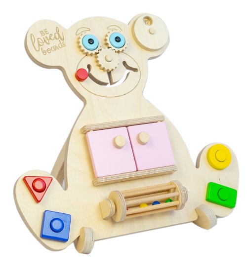 Medveď väčšinou symbolizuje silu, odvahu, a to najdôležitejšie pre deti, starostlivosť matky. Pomocou hry so vzdelávacím busy boardom Mini Bear Vase dieťa sa nauči čísla, 4 druhy počasia, zaviazať šnúrky a motivuje k vytváraniu ďalších nových návykov. K medveďovi je prirobená hrkálka, ktorú nemožno oddeliť a obsahuje štyri drevené gule, ktoré nemožno z hrkálky vybrať. Hlavné vlastnosti: rozvíja motorické schopnostinaučí číslarozvíja koordinacinaučia základné farbynaučia 4 druhy počasiaučia tvarynaučia, ako si zaviazať šnúrkyrozvíja koordináciu pohybu