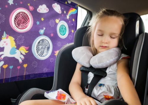 Slnečná clona do auta bola špeciálne navrhnutá tak, aby vytvorila farebné prostredie a zaujala vaše dieťa na cestách. Prirodzené denné svetlo vytvára fascinujúce textúry prostredníctvom farebných bublín, ktoré vizuálne stimulujú zmysly vášho dieťaťa. Napriek tomu, že sieťový materiál chráni vaše dieťa pred slnkom, filtruje svetlo bez toho, aby obmedzoval výhľad, čo umožňuje maximálnu bezpečnosť. Nevyhnutný výrobok pre zábavnú a veselú jazdu.