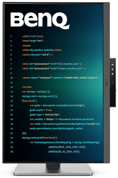 Monitor BenQ RD240Q pre programátorov, kodérov a ďalších pracovníkov v IT sfére. Ponúka pokročilé režimy na písanie kódov, lepšiu viditeľnosť a orientáciu na každom riadku. Displej obsahuje špeciálnu úpravu, ktorá zamedzuje odleskom a zaisťuje perfektné čítanie kódov. Rozlíšenie WQXGA zobrazí obsah jasne a ostro, takže zreteľne rozoznáte každý znak.