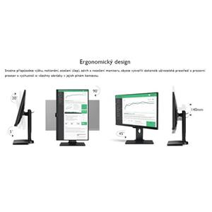 LED monitor s uhlopriečkou 27" a rozlíšením Full HD 1920 x 1080 obrazových bodov. Ponúka kontrastný pomer 1000:1 a dobu odozvy 5 ms . Jas monitora je 250 cd/m 2 . Príjemné sú tiež pozorovacie uhly 178 ° horizontálne. dvojica integrovaných reproduktorov s celkovým výkonom 4 W. Otočný podstavec, výšková staviteľnosť a podpora režimu Pivot umožní optimálne nastavenie polohy.
