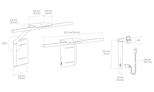 LED lampička pre elektronické čítanie špeciálne navrhnutá pre použitie s notebookom . Lampička osvetľuje iba notebook a jeho najbližšie okolie a redukuje množstvo svetla dopadajúceho na obrazovku, čím eliminuje nepríjemné odlesky. Oproti klasickej lampičke tak poskytuje rovnomerne rozptýlené osvetlenie po celej vašej pracovnej ploche. Vďaka dvom spôsobom umiestnenia ramena sa perfektne prispôsobí vašim potrebám. Pomocou dotykového ovládania je možné ľahko zapnúť osvetlenie a nastaviť jas alebo farebnú teplotu. Lampička je tiež vybavená snímačom, ktorý automaticky reguluje jas na základe aktuálneho okolitého osvetlenia. Vstavanú batériu , ktorá ponúka až 160 minút prevádzky (pri 50% jase), je možné dobíjať z akéhokoľvek USB portu . Uchytenie na notebook je ľahké a bezpečné, stačí na zadnú stranu obrazovky nalepiť priloženú magnetickú samolepku, na ktorú sa následne prichytí lampička.