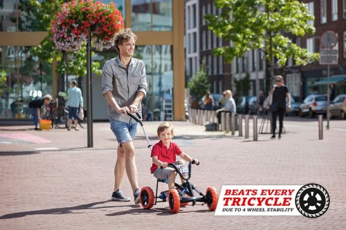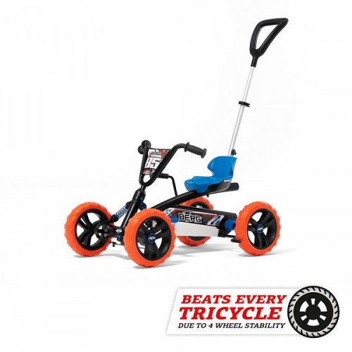 Fantastická šliapacia motokára BERG Buzzy Nitro upúta na prvý pohľad. Motokára je vhodná aj pre najmenších vodičov. Vďaka motokáre sa deti ľahko a rýchlo naučia šliapať. Najskôr sa môžu odrážať nohami od zeme a než sa nazdáte, budú mať nožičky na pedáloch. Šliapanie má ľahký chod, motokára je ľahko ovládateľná a stabilná. Šliapacia motokára je vybavená výškovo nastaviteľnou vodiacou tyčou, ktorú ľahko pripevníte aj odpojíte. Riadidlá i pedále môžu byť ovládané nezávisle na sebe. Štyri tiché kolesá EVA a otočná náprava držia motokáru pevne a bezpečne na zemi. Motokára rastie s deťmi vďaka nastaviteľnej sedačke. Nevyhnutnou súčasťou je ručná brzda na pravej strane motokáry. Vďaka zámku riadenia môžete zablokovať riadidlá a uľahčíte si tak jazdu, keď dieťa tlačíte pomocou vodiacej tyče. V tejto polohe sa stávajú pedále neaktívne. Motokáru je možné prepnúť na voľnobeh. Jazda je možná dopredu aj vzad. Farebné prevedenie - čierno-oranžové je vhodné pre chlapcov aj dievčatá. Vhodné pre deti od 85 – 115 cm, od 2 – 5 rokov. Maximálna nosnosť: 30 kg. Hmotnosť: 8 kg. Video: https://www.youtube.com/watch?v=opa_K3yIPAQ . Video - návod na zostavenie: https://www.youtube.com/watch?v=c72DYuQ46gk