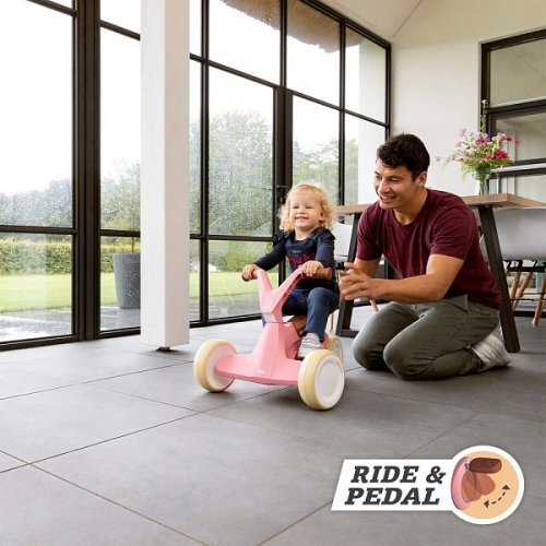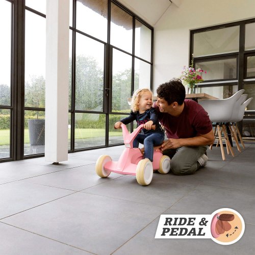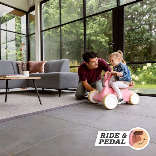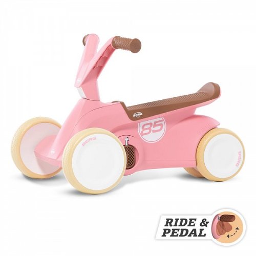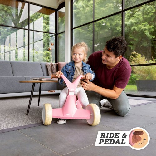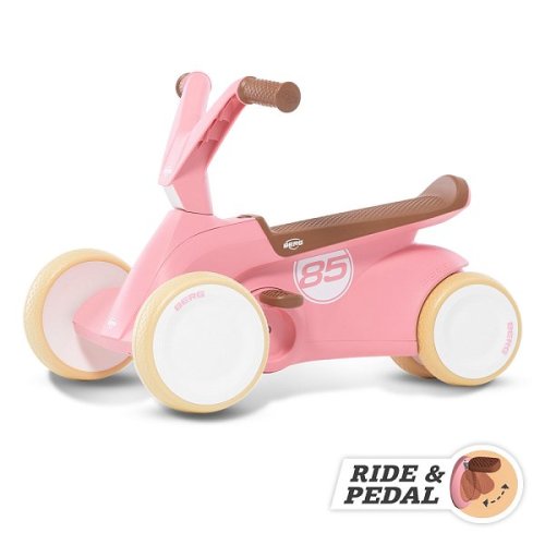 Jazda na BERG GO Retro 2v1 je vďaka ergonomickému designu vždy bezpečná. Sedadlo je vymyslené tak, že sa menšie aj väčšie deti môžu vždy pohodlne usadiť bez toho, aby im nohy dotýkali volantu. Tvar sedadla zabraňuje skĺznutiu dieťaťa z odrážadla. Vďaka štyrom tichým pneumatikám EVA zostáva odstrkovalo/šliapadlo vždy pevne na zemi. Akonáhle si dieťa osvojí jazdu na odrážadle a naučí sa stabilite, môže sa začať pomaly učiť šliapať pomocou sklopných pedálov. Pútavý retro vzhľad vo farebnej kombinácii ružovej a hnedej upúta na prvý pohľad. BERG GO Retro odrážadlo/šlapadlo je tou najlepšou voľbou, pomáha pri rozvoji vášho dieťaťa. Vhodné pre deti od 70 – 100 cm. Maximálna nosnosť: 20 kg. Hmotnosť: 3,85 kg. Odstrkovalo/Šlapadlo vj vhodné pre deti od 10 mesiacov do 2,5 rokov. Video: https://www.youtube.com/watch?v=sl4xZYXfFB0