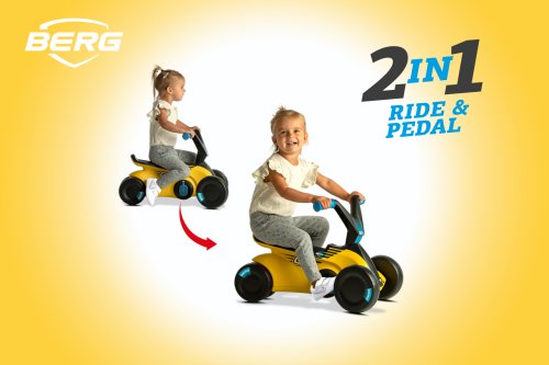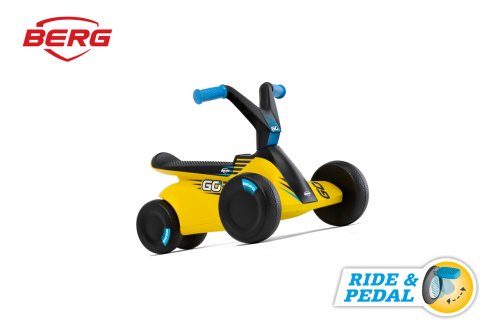 BERG GO SparX - odrážadlo a vodné bicykle v nádhernom žlto-modro-čiernom prevedení je vhodné pre malé dievčatá i chlapcov od 10 mesiacov. BERG GO SparX rastie s deťmi. Akonáhle si dieťa osvojí jazdu na odrážadle a naučí sa stabilite, môže sa začať pomaly učiť šliapať pomocou sklopných pedálov. Super pružné a ľahké šliapanie vďaka guličkovým ložiskám. Odrážadlo je stabilné a bezpečné vďaka 4 kolesám BERG GO² s tichými pneumatikami, ktoré držia odrážadlo pevne na zemi. Jazda je možná dopredu aj dozadu. Riadidlá a pedále môžu byť ovládané nezávisle na sebe. Dizajn odrážadla je prispôsobený veku dieťaťa, nie je potrebné nastavovať riadidlá ani sedadlo. Tvar sedadla zabraňuje skĺznutiu dieťaťa z odrážadla. BERG GO odrážadlo je tou najlepšou voľbou, pomáha pri rozvoji vášho dieťaťa. Vek: 10m-30m. Odporúčaná výška dieťaťa: 70-100 cm. Rozmer: 65 x 45 x 44 cm. Váha: 3,85 kg. Max. nosnosť: 20 kg. Pneumatiky: EVA. Video: https://www.youtube.com/watch?v=4YVV7gaDx7o