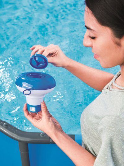 Plavák pre bazénovú chémiu pre multifunkčné tablety. Ideálny pomocník na udržiavanie čistej vody v bazéne.