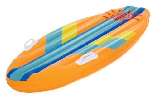 Nafukovací matrac Bestway v tvare surfu Sunny Rider je vhodným doplnkom nielen pre váš bazén, ale zábavu si s ním užijete aj v rybníku alebo pri mori. Bezpečnú a stabilnú jazdu zaisťujú robustné rukoväte a spevnená stredová časť. Trendy farebná potlač v jasných farbách a slnečnou grafikou (2 farebné prevedenia) si deti ihneď zamilujú. Jednoduché nafúknutie, vyfúknutie a zloženie.