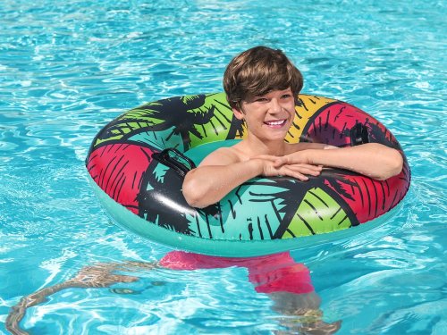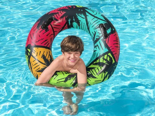 s plávacím kruhom získavajú deti istotu a odvahu, pobyt vo vode pre nich bude zábavný a zároveň aj bezpečný, opatrený dvoma plastovými madlami, ľahký a skladný.