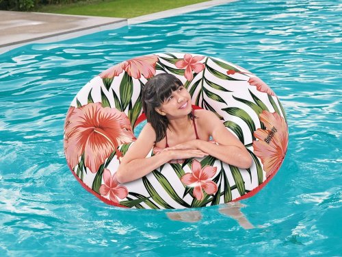 Nafukovací kruh s farebnou potlačou pre zábavu aj relaxáciu vo vode. Vlastnosti: