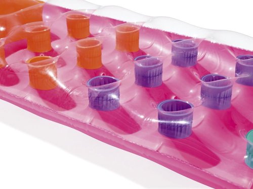komfortným podhlavníkom, priehľadná vrchná strana, vybavené dvoma bezpečnostnými ventilmi, ktoré chránia pred neočakávaným vyfúknutím vzduchu, súčasťou je aj sada na opravu lehátka, hrúbka vinylovej steny: 0,24 mm.