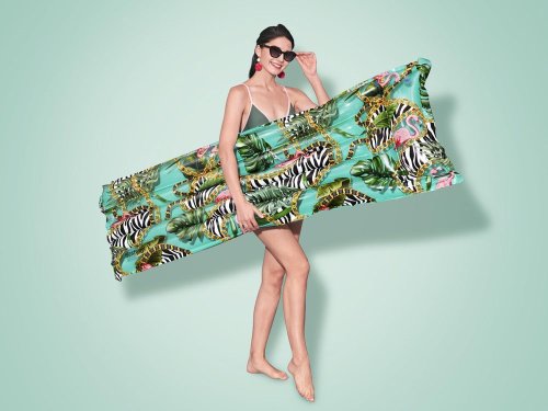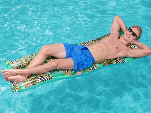 Nafukovacie lehátko s farebnou potlačou.