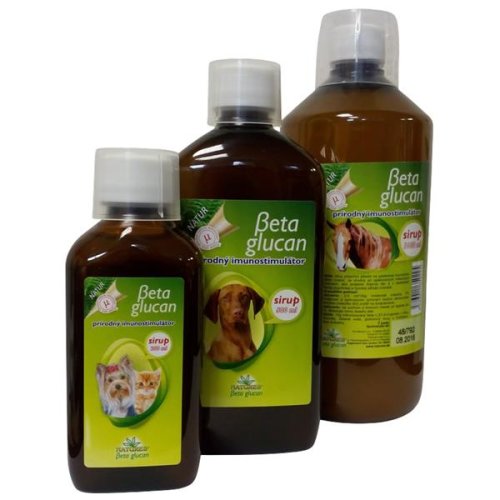 Použitie: Tekuté doplnkové krmivo vhodné pre všetky druhy zvierat. Sirup obsahujúci beta glukán pôsobí priaznivo na funkciu imunitného systému zvierat. Sirup je vhodný pre zvieratá ako doplnok stravy v priebehu infekčných ochorení, v čase rekonvalescencie, pri liečbe rán alebo pri zvýšenej psychickej a fyzickej záťaži. Zloženie: glukózový sirup s fruktózou, voda, mikronizovaný beta -1,3/1,6-D-glukán z Hlivy ustricovej Doplnkové látky: technologické: konzervanty Analytické zložky.: Hrubý proteín 0,5%, hrubý tuk 1,25%, hrubá vláknina 0,2%, hrubý popol 1,3%, vlhkosť 49,2% Návod na použitie: Pred použitím pretrepte! Podávajte 2ml/10kg živej hmotnosti. V priebehu choroby alebo pri zvýšenej záťaži dávkujte 5ml/10kg živej hmotnosti. Podávajte po dobu 2-3 mesiacov alebo podľa pokynov veterinárneho lekára. Je vhodný na dlhodobé používanie. Skladovanie: Na chladnom a suchom mieste do teploty 25C. Skladujte mimo dosahu detí. Č. šarže/Spotrebujte do: viď. obal