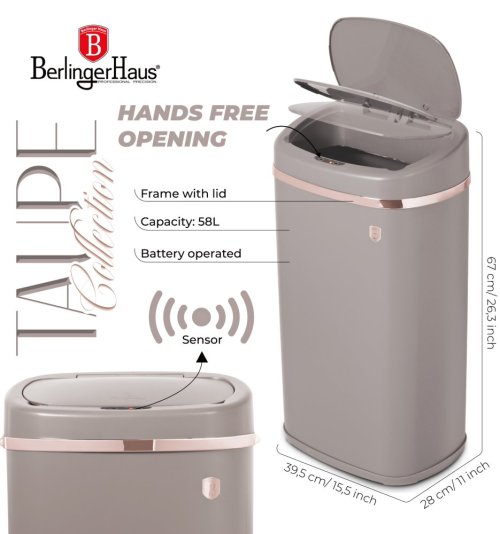 Bezdotykový odpadkový kôš so senzorom 58 l Taupe Collection BH-9523