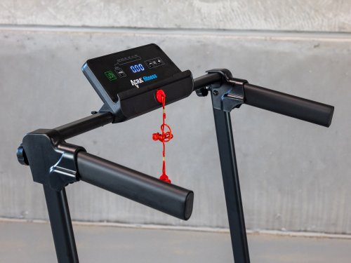 Na páse nájdete krátky držiak s mäkkými rukoväťami , ktorý zaistí potrebnú stabilitu pri pohybe. Rukoväte v sebe majú integrovaný snímač tepovej frekvencie, vďaka ktorému môžete zaznamenávať svoj výkon. V prípade nutnosti vám rýchlobrzda umožní pás okamžite vypnúť. Stačí vysunúť bezpečnostný kľúč a pás sa zastaví. Veľkou výhodou pásu je jeho skladnosť. Je široký 13 cm a váži 21 kg. Ľahko ho zložíte a umiestnite napríklad za skriňu.
