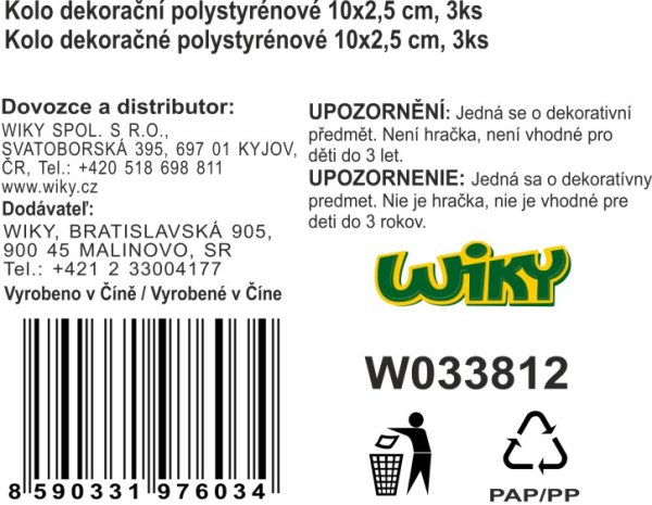 Bicykel dekoračný polystyrénový 10x2,5 cm, 3ks