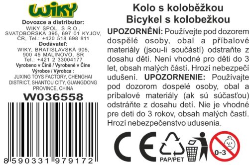 Bicykel s kolobežkou. Veľkosť kolesa 10 cm. Súčasťou kľúč, skrutkovač. 4 varianty - modrá, zelená, žltá, červená.