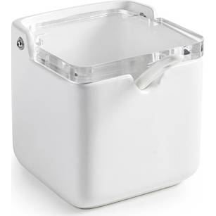 Keramická dóza na soľ s plastovým vekom a lyžičkou pre ľahké dávkovanie.